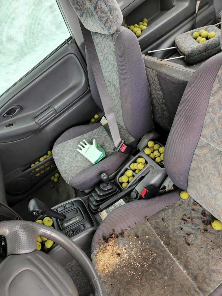 One time when I was away for an extended period, the one tenacious squirrel filled up my car with his winter supply of food!!!